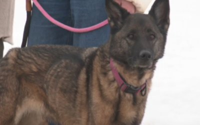 The six-year-old German Shepherd-cross got spooked when she was out with one of her owners in Brazeau County near Drayton Valley, southwest of Edmonton, in December and ran off into the woods.